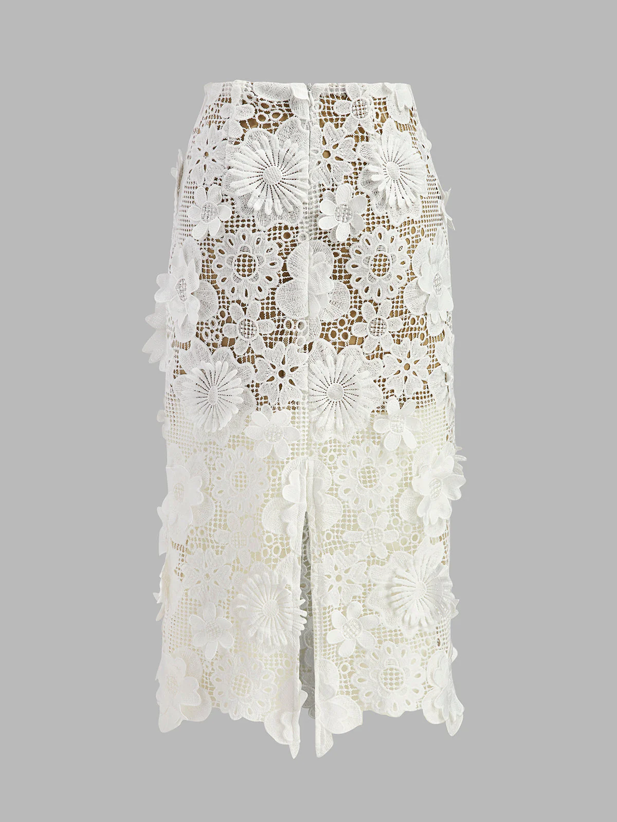 Deze tweedelige set bestaat uit een prachtig geborduurde floral lace top en bijpassende rok met subtiele asymmetrie, die samen zorgen voor een vrouwelijke en verfijnde uitstraling.