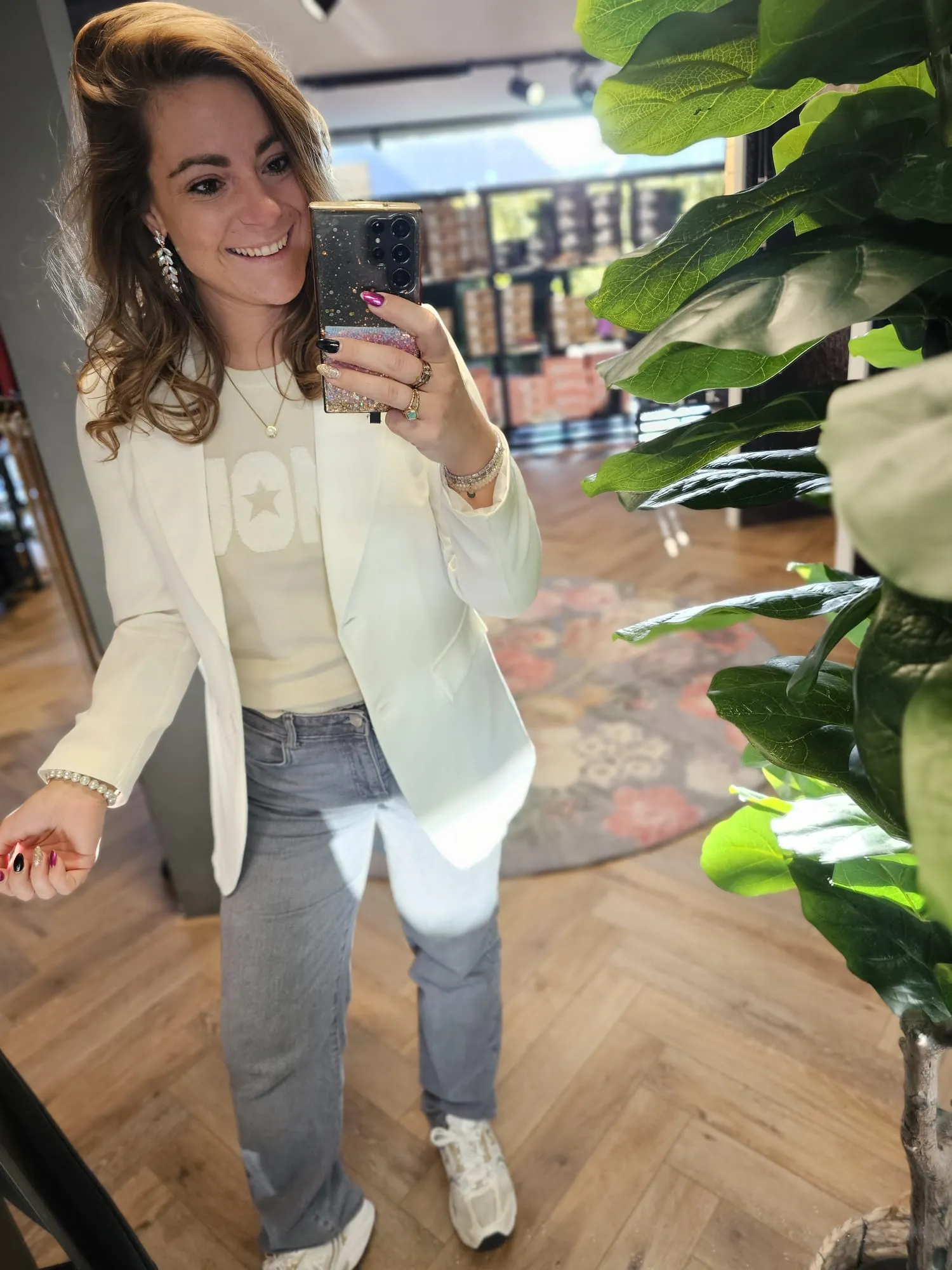 Ons model is 1.70 lang en draagt maat: M, haar gewoonlijke maat is: S/M.