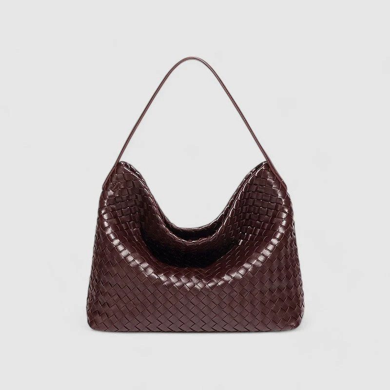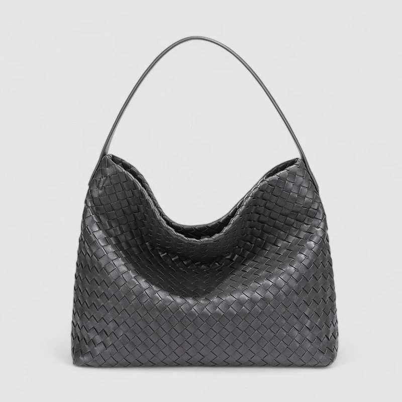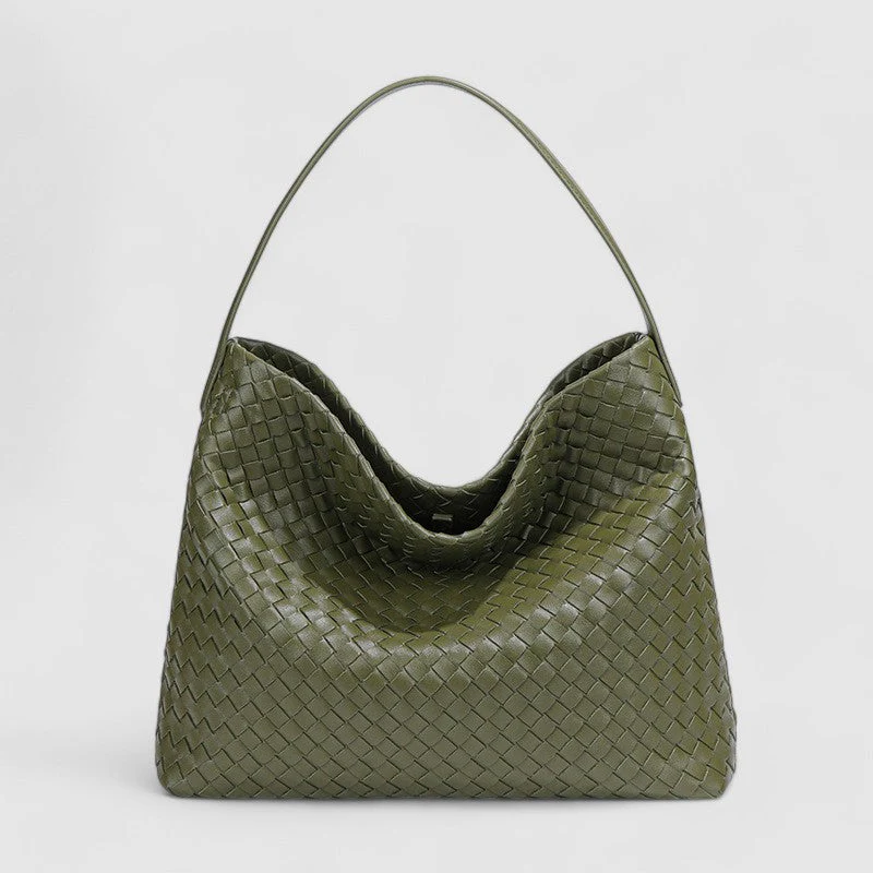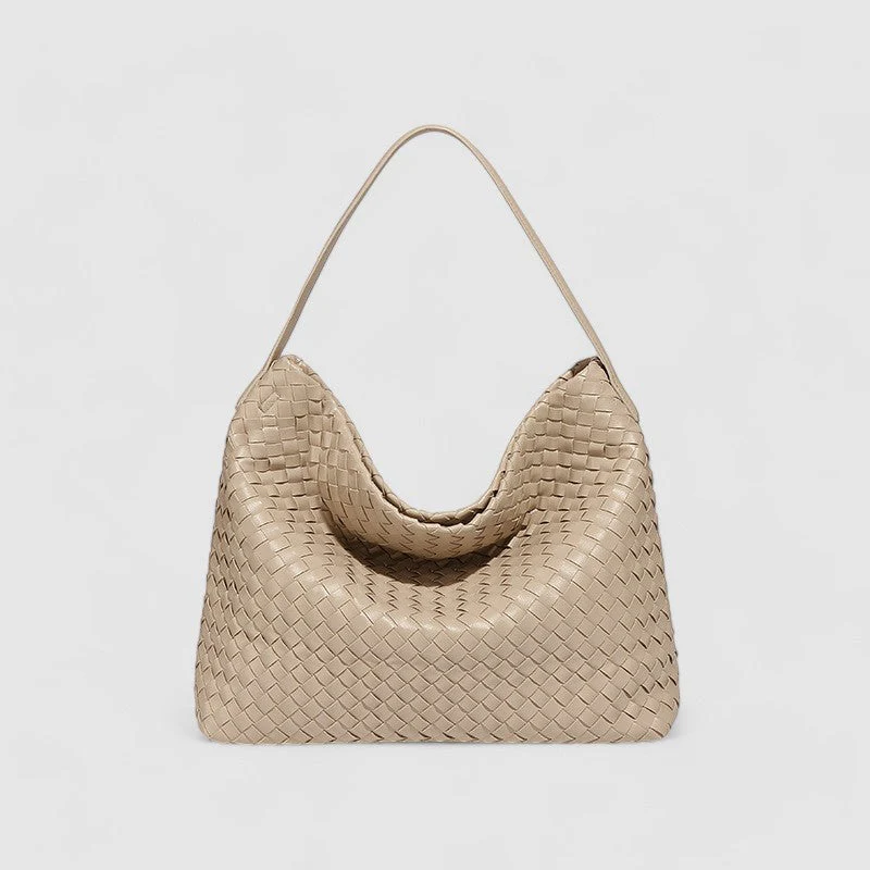 Deze ruime damestas is vervaardigd van hoogwaardig vegan leer en straalt met haar minimalistisch design een tijdloze elegantie uit. Dankzij het geweven patroon en de neutrale afwerking past deze tote moeiteloos bij elke outfit – van casual tot zakelijk.