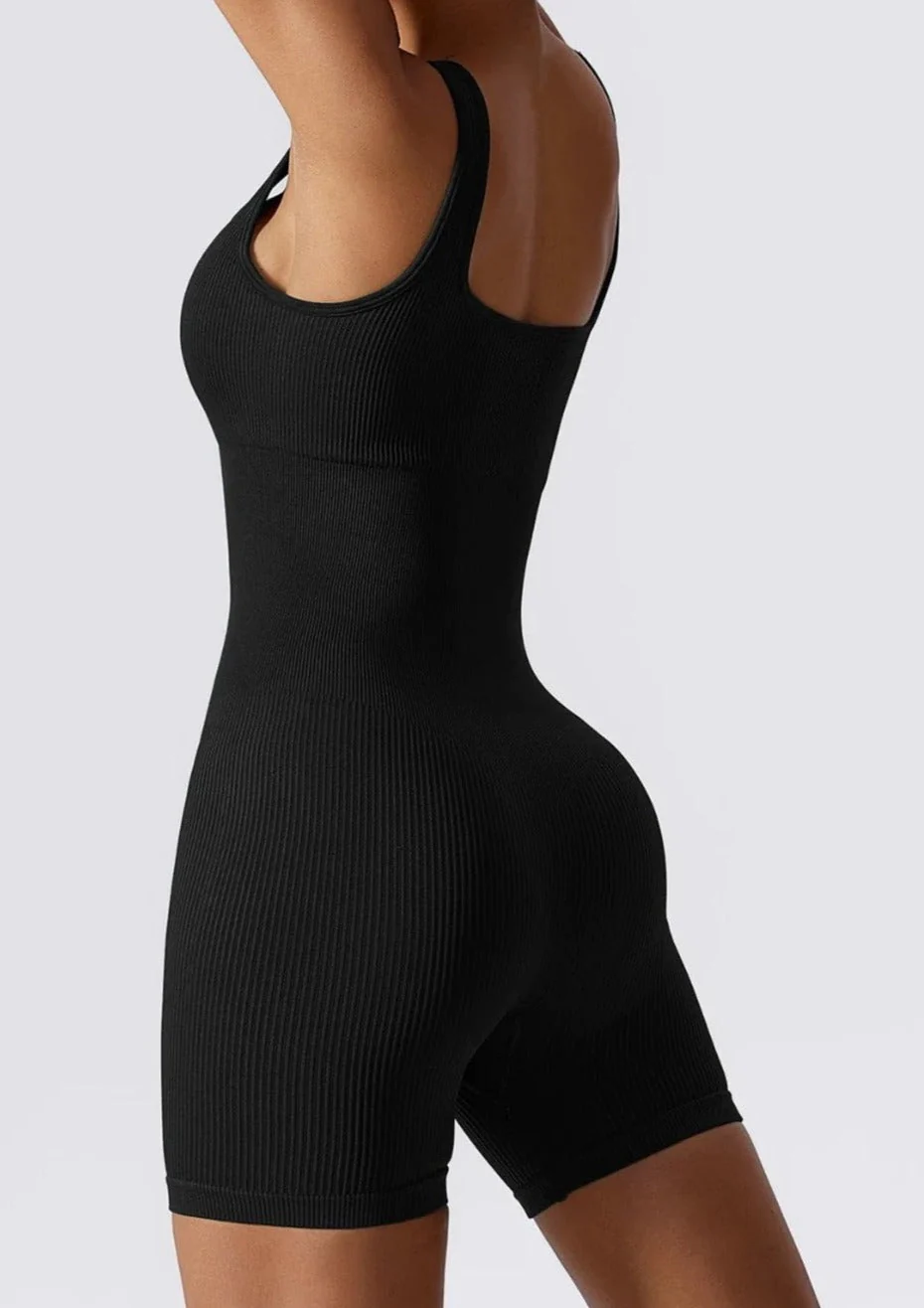 De stretch en het micro-rib detail rond de taille zorgen voor een elegante silhouet, terwijl de verwijderbare pads extra ondersteuning bieden. Het vierkante decolleté en de U-vormige rug geven het bodysuit een stijlvolle uitstraling die net zo goed werkt tijdens work-outs als casual gedragen onder een jasje.