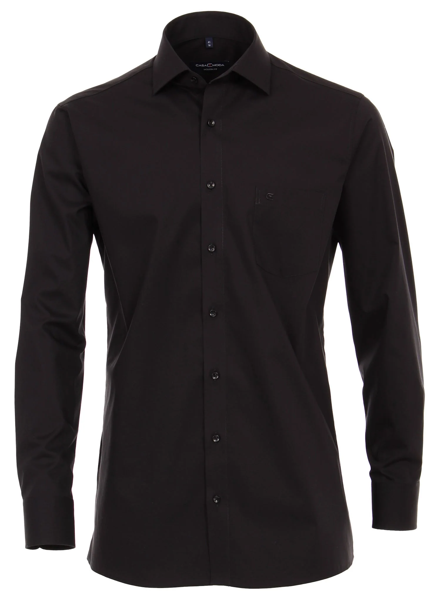 Zwart overhemd met extra lange mouwen van Casa Moda. Dit overhemd is geschikt voor business gelegenheden en casual gelegenheden. Het overhemd is voorzien van een handige borstzak. Zwart is een populaire keuze wanneer het aankomt op de kleur van een overhemd.