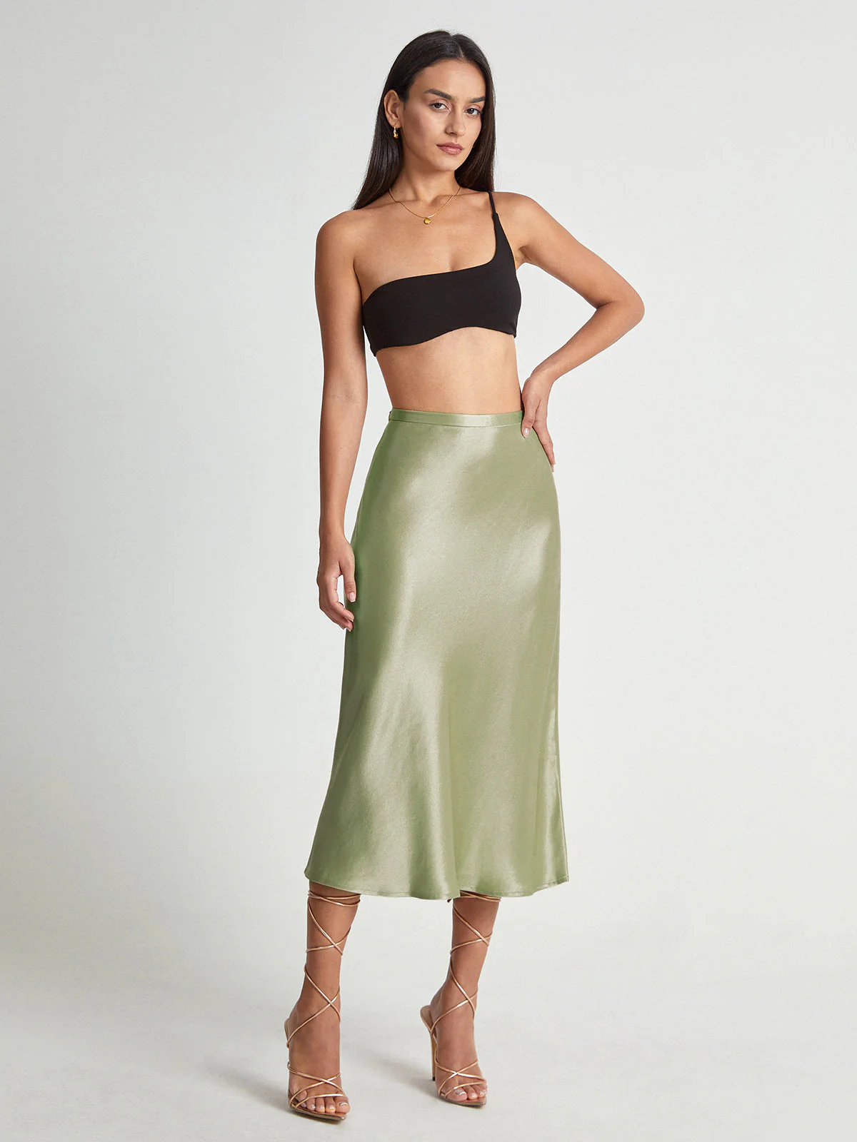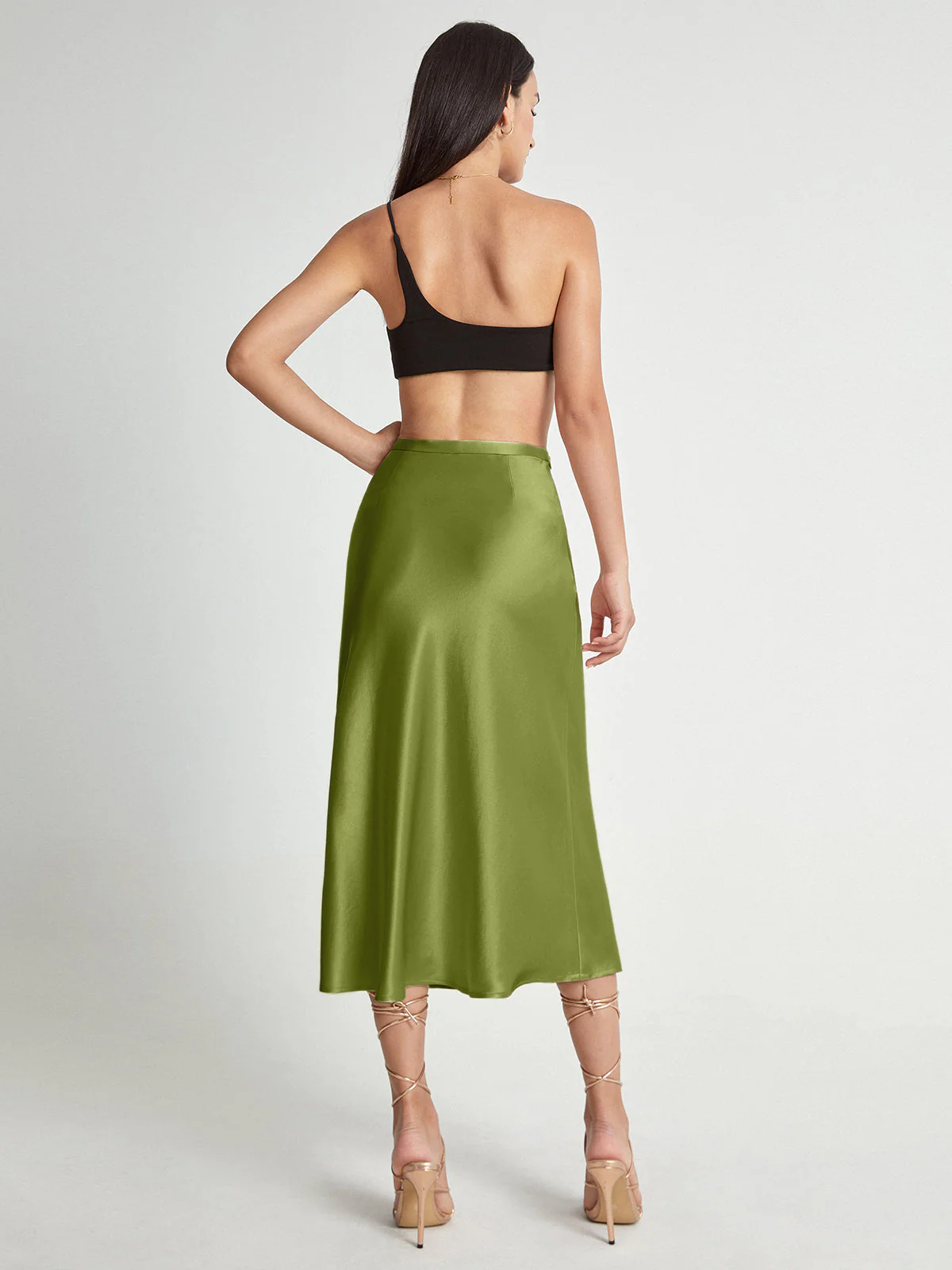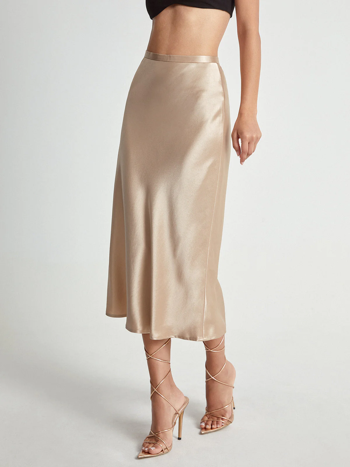 Ontdek de ultieme combinatie van klasse en comfort met deze elegante satijnen midi rok voor dames