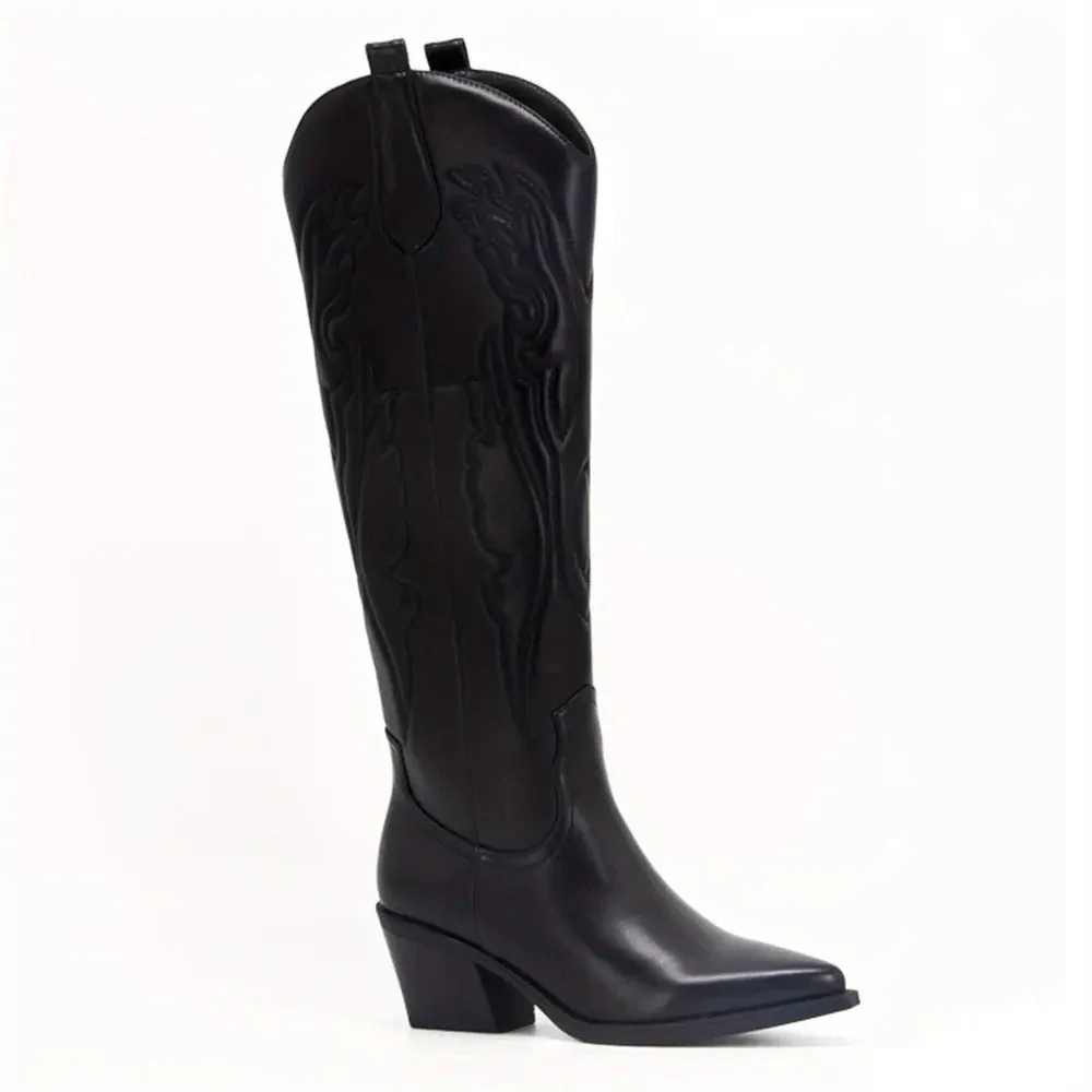 Voeg deze kniehoge cowboylaarzen toe aan je collectie en stap zelfverzekerd elke outfit tegemoet.
