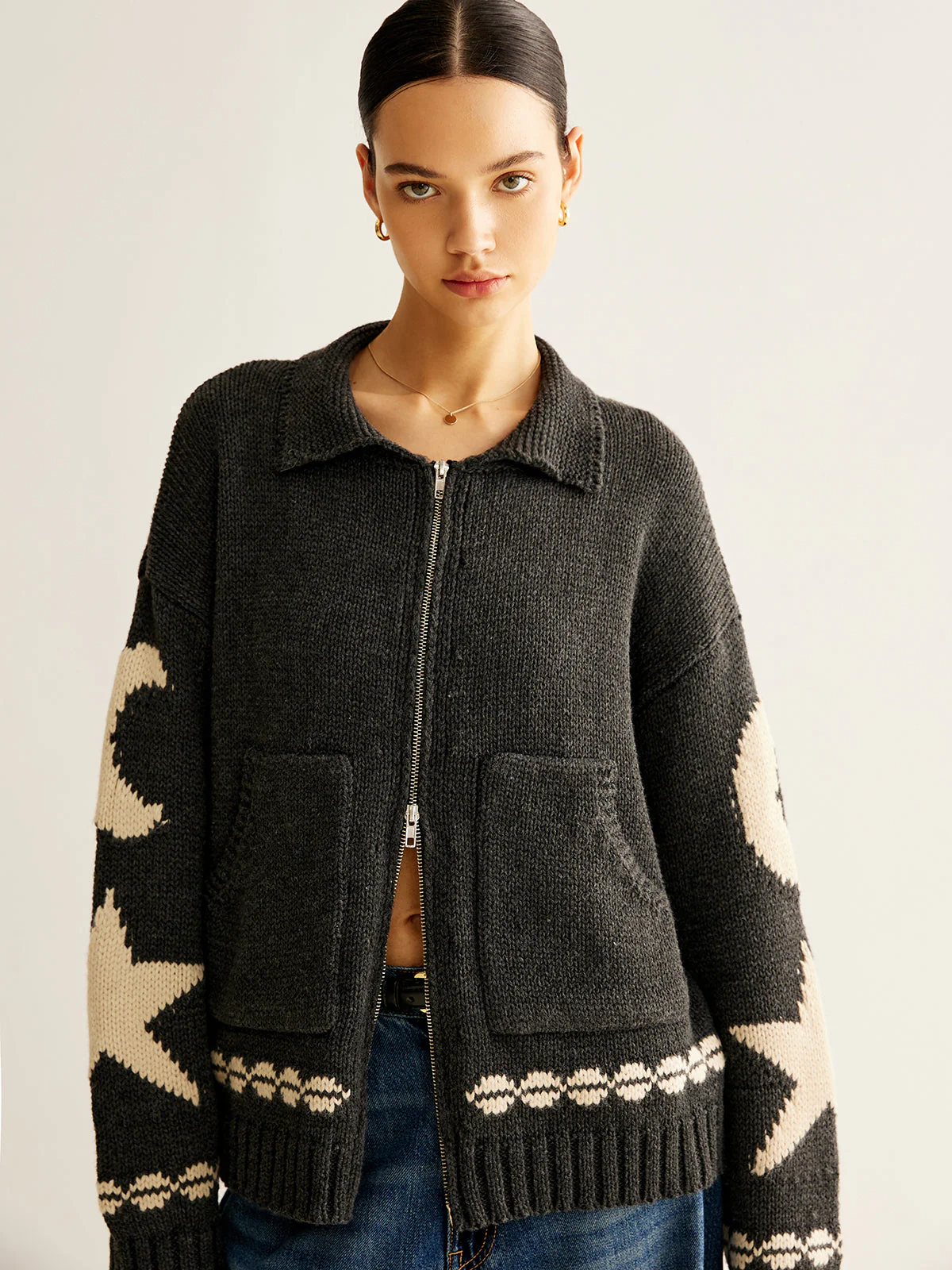 - Warm gebreid ontwerp met jacquard patroon
