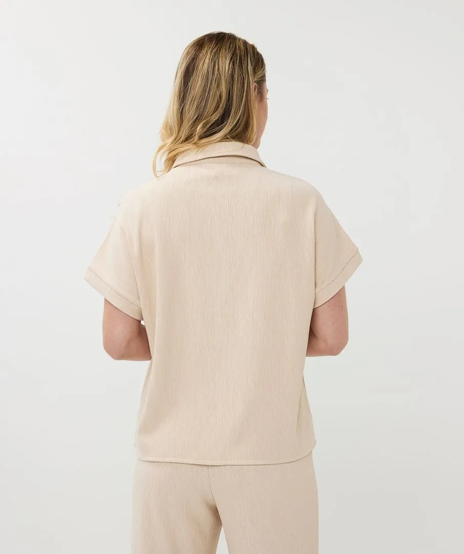 Op zoek naar een lenteproof co-ord set met een elegante touch? Ga dan voor deze fancy crinkle doorknoopblouse met bijpassende broek. Een stijlvolle look waarvoor je geen comfort hoeft in te leveren!