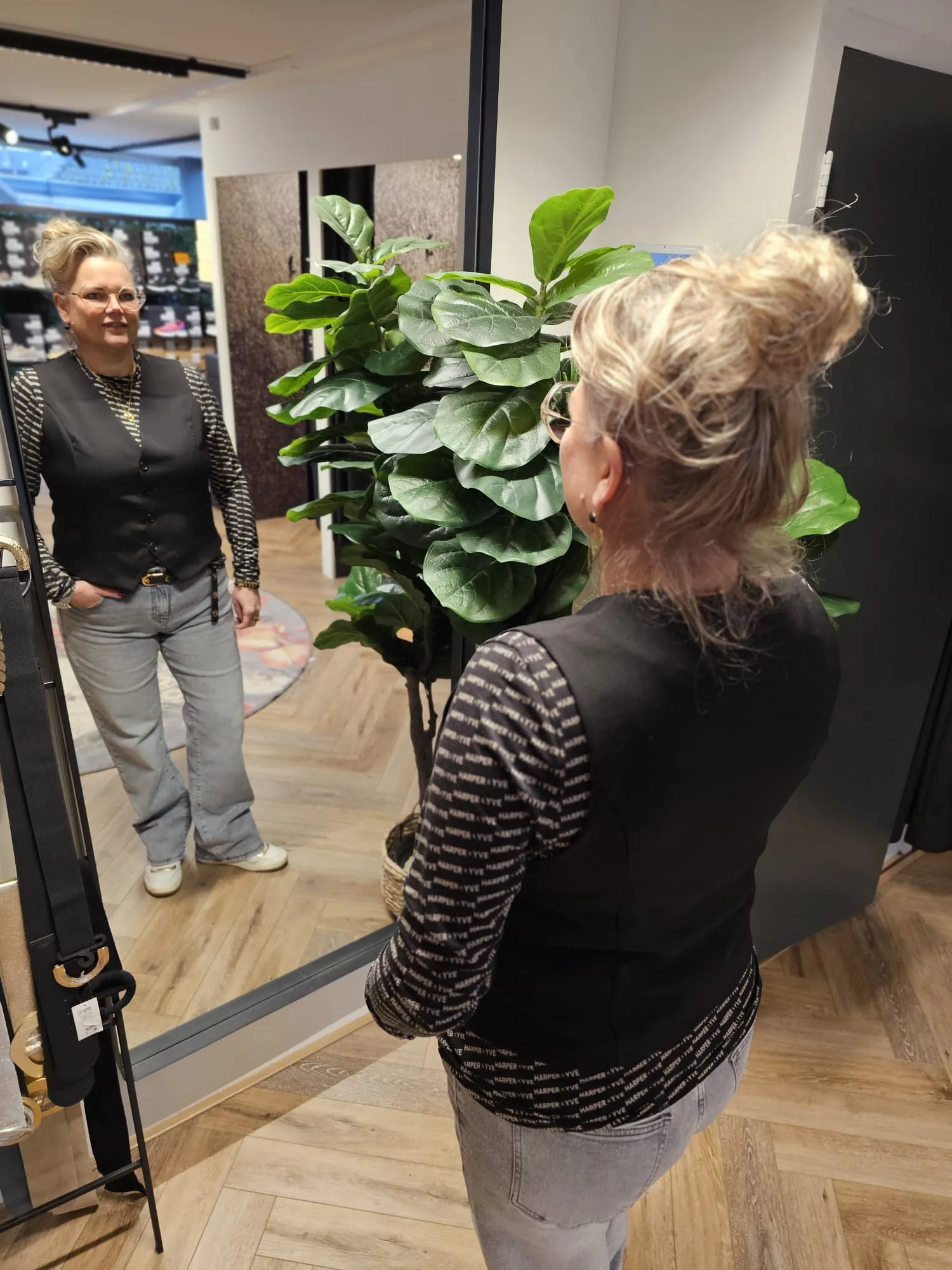 Ons model is 1,68 lang en draagt: 2XL, het gilet valt iets kleiner.