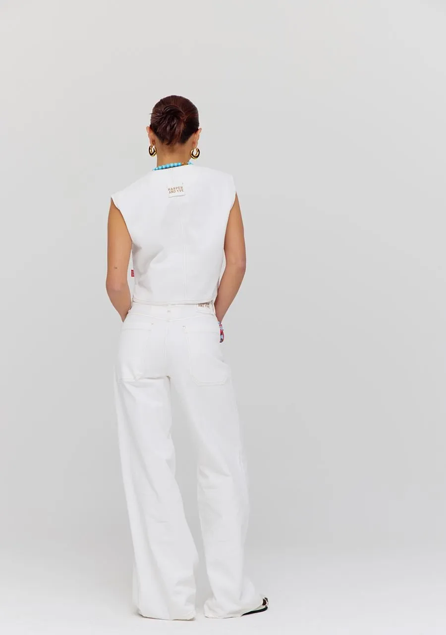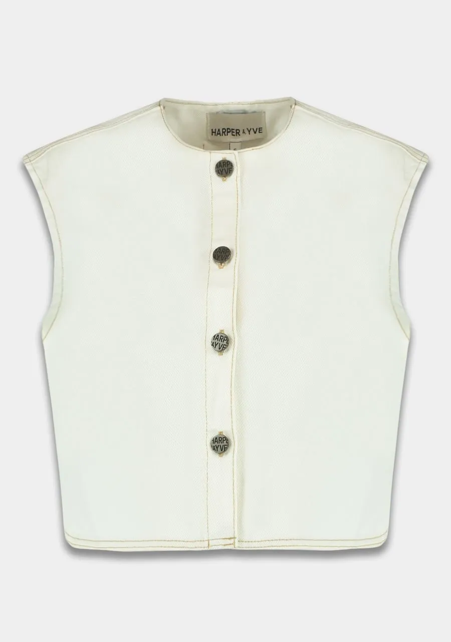 Geef je outfit een stijlvolle upgrade met dit structured, mouwloze gilet in een veelzijdige ecru tint. Gemaakt van 100% stevig katoen, combineert dit item moeiteloos comfort met een moderne uitstraling. De rechte pasvorm flatteert elk silhouet, terwijl de stoere HARPER & YVE-knopen een edgy accent toevoegen aan het minimalistische design.