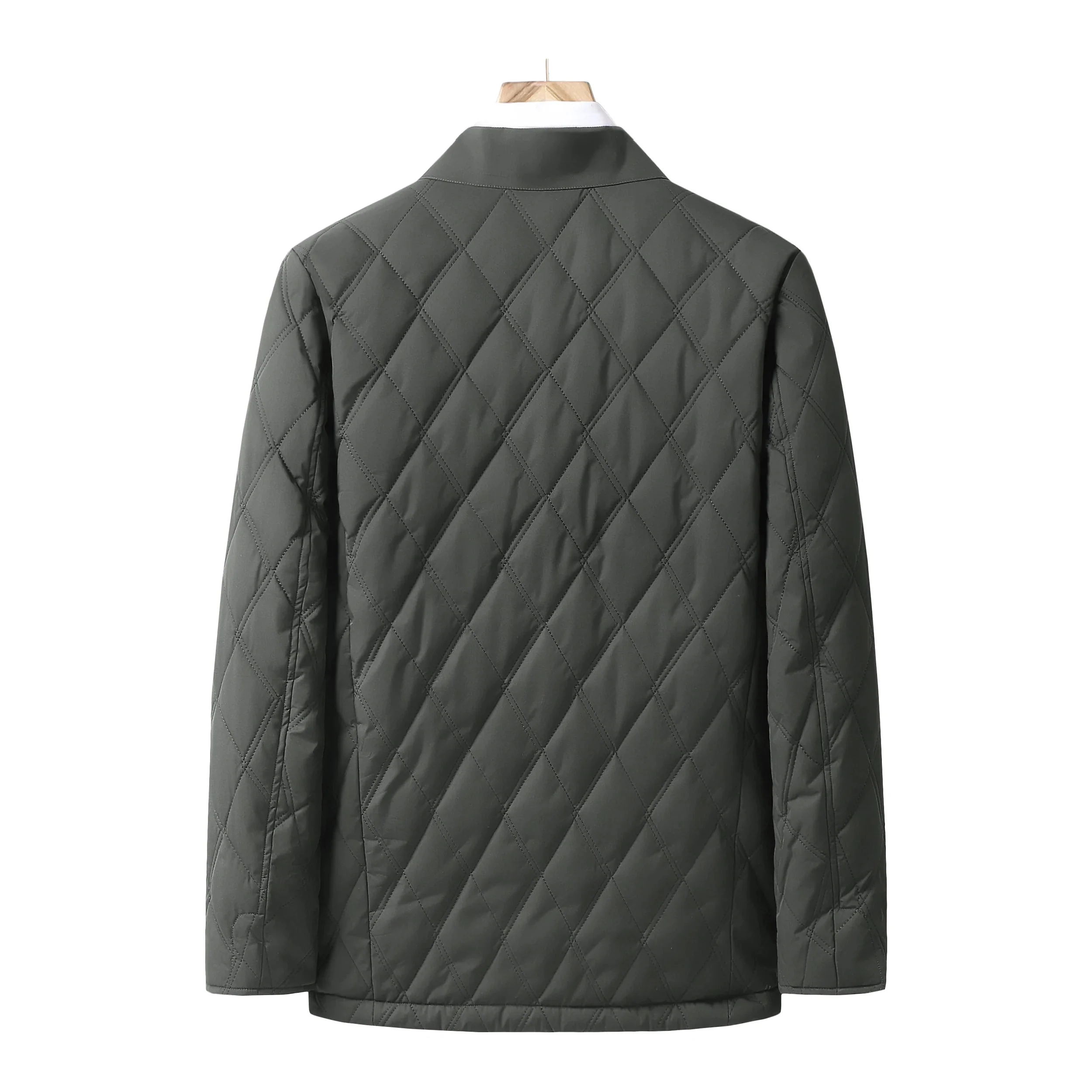 Het Heren Gewatteerd Jack Klassieke Doorgestikte Jas met Kraag is een praktische keuze voor koelere dagen. Het gewatteerde ontwerp en de afslagkraag geven dit jasje een moderne uitstraling, terwijl de dubbele isolatie zorgt voor extra warmte en de ritszakken handig zijn om essentials mee te nemen.
