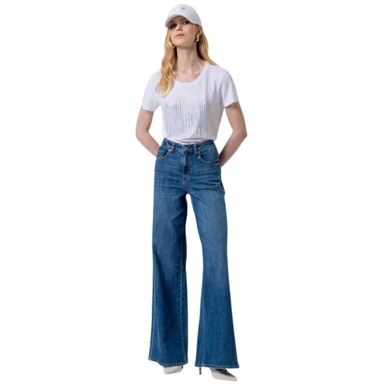 Deze high waist wide leg jeans van Fracomina straalt moderne elegantie uit met een krachtige, vrouwelijke pasvorm. De hoge taille benadrukt het silhouet, terwijl de wijde pijpen zorgen voor een verlengend en flatterend effect.