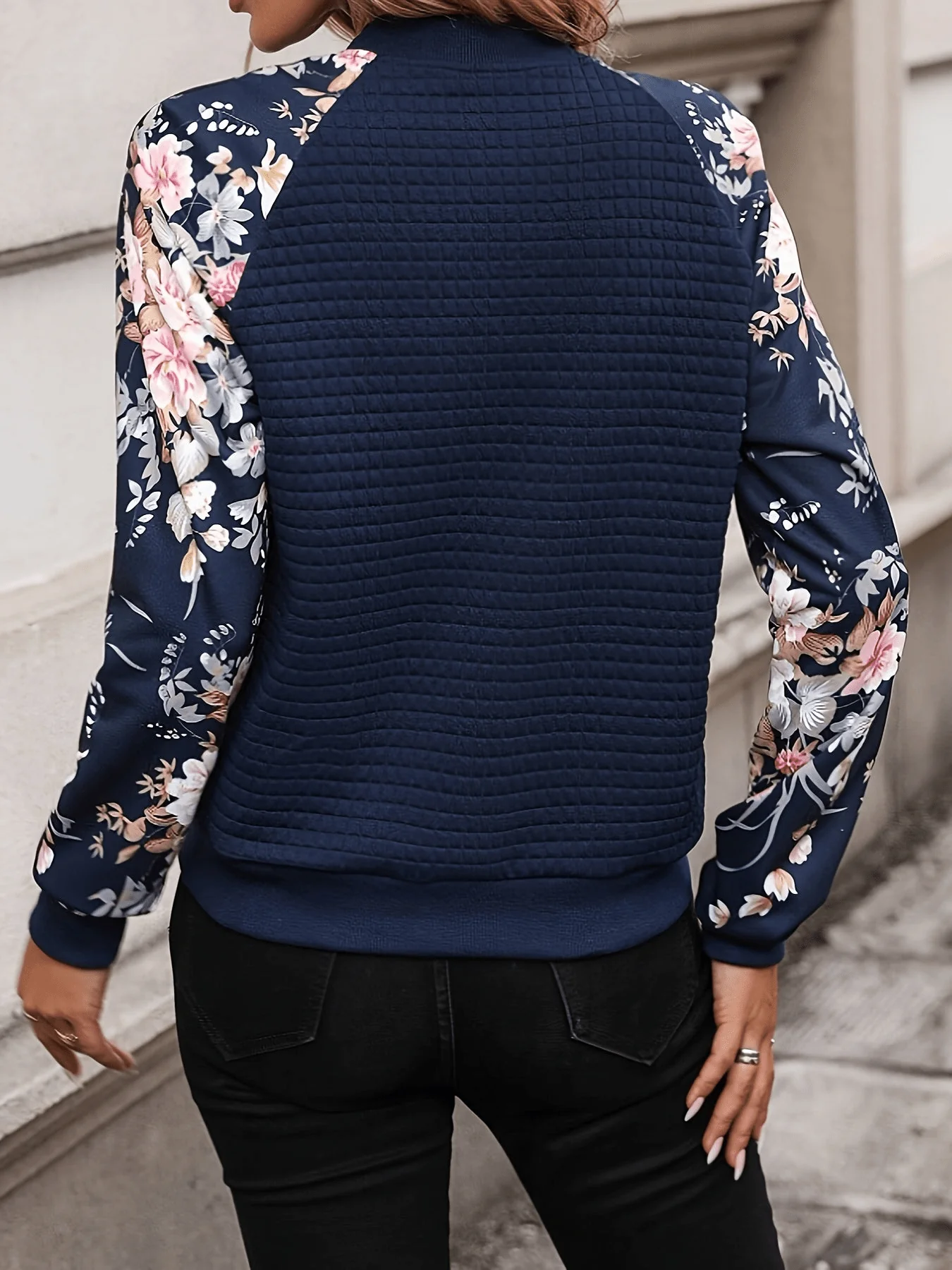 Dit dames bomberjack met bloemenprint is de perfecte combinatie van stoer en elegant. Het kleurrijke bloemenpatroon geeft een speelse flair aan de klassieke bomberstijl, terwijl de comfortabele pasvorm zorgt voor een casual maar stijlvolle uitstraling. Ideaal voor de overgangsmaanden, dit jack past perfect bij zowel jeans als een casual rok, waardoor het een must-have is voor modebewuste vrouwen.