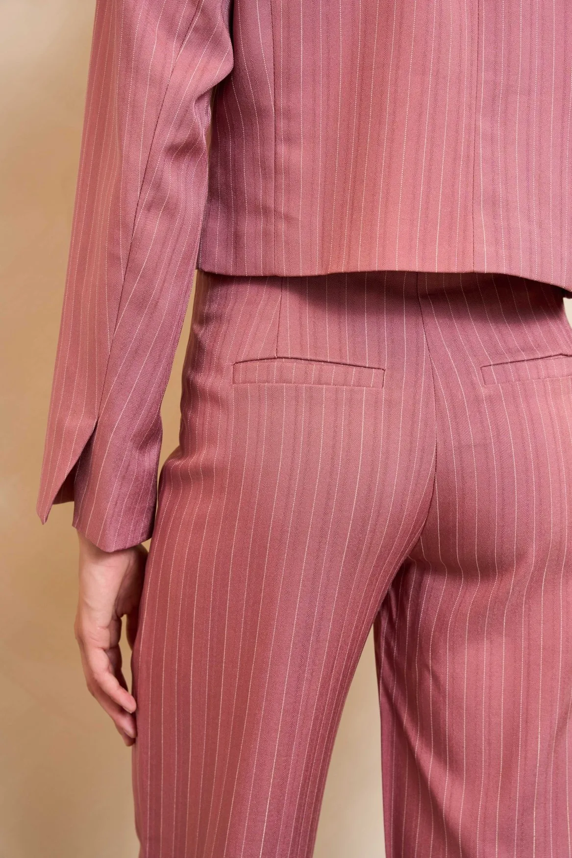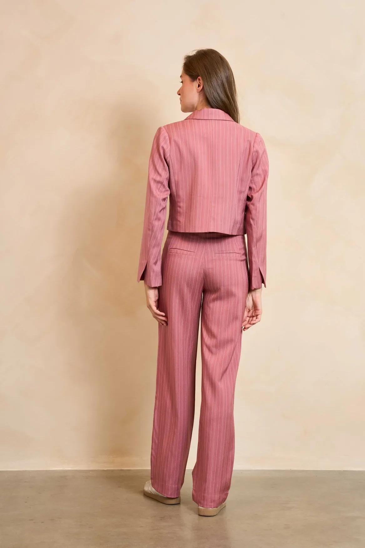 Blazer Norelle is uitgevoerd in een zachte mauve pink tint en heeft een rechtvallende pasvorm met subtiele schoudervullingen voor een sterke, elegante look. De reverskraag en knoopsluiting geven het jasje een klassieke uitstraling, terwijl het lichte glansdetail een verfijnde finishing touch toevoegt. Draag ‘m als set met broek Junae of combineer los voor een stijlvolle, moderne outfit.