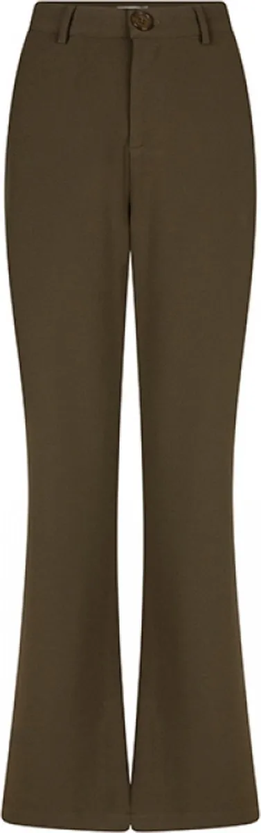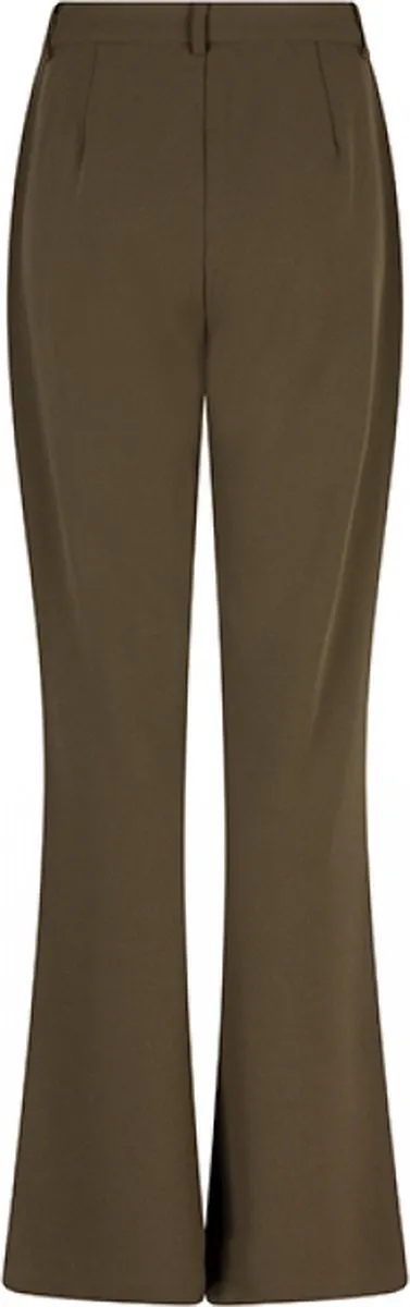 Broek Whitley is een groene aangesloten broek met flared broekspijpen. Bij de pijpen zit aan de onderkant een kleine split aan de buitenkant. De flared broek heeft een knoopsluiting, een rits in het midden en bevat veel stretch.