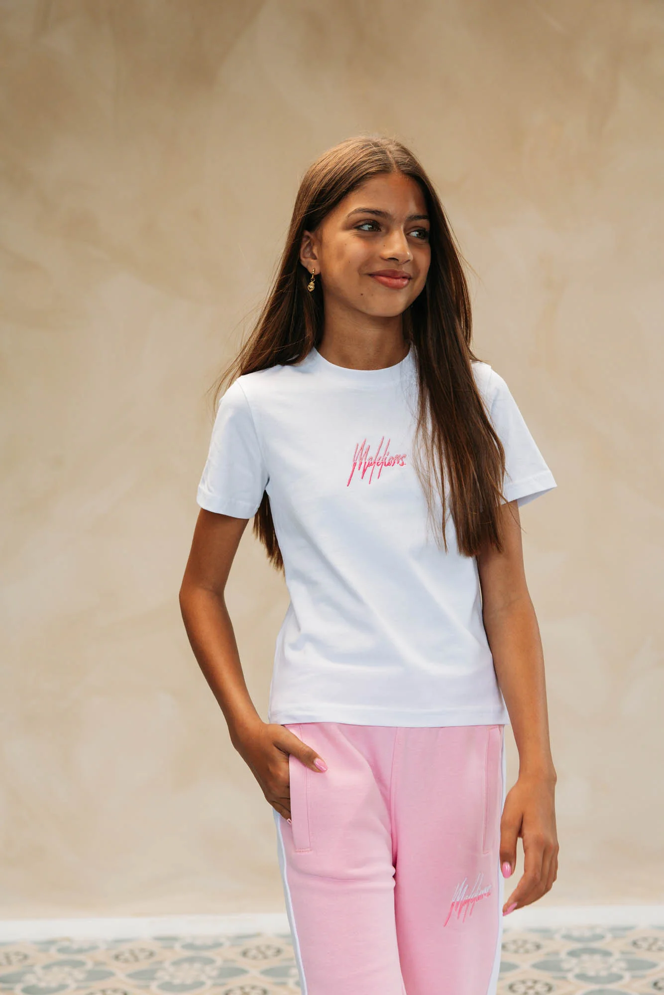 De Malelions Junior Girls Kiki T-Shirt in wit/donkerroze is een trendy en frisse toevoeging aan de garderobe. De combinatie van het heldere wit met het krachtige donkerroze zorgt voor een opvallende en vrouwelijke uitstraling. Gemaakt van zacht en comfortabel materiaal en afgewerkt met het iconische Malelions-logo – ideaal voor elke dag.