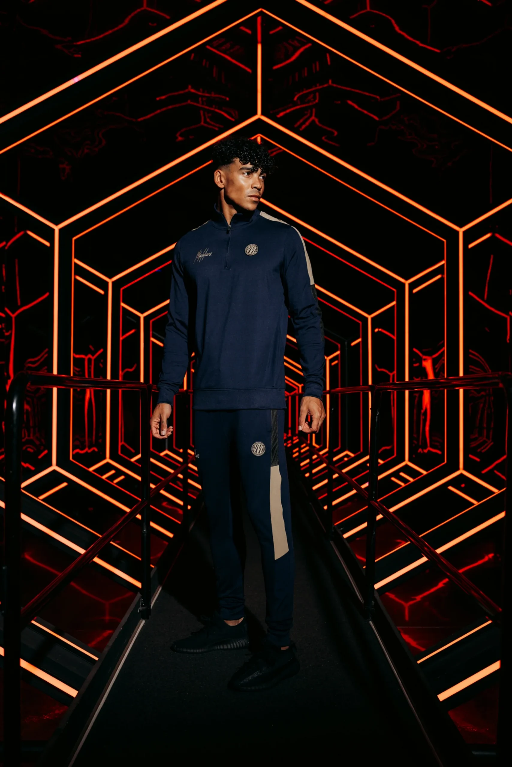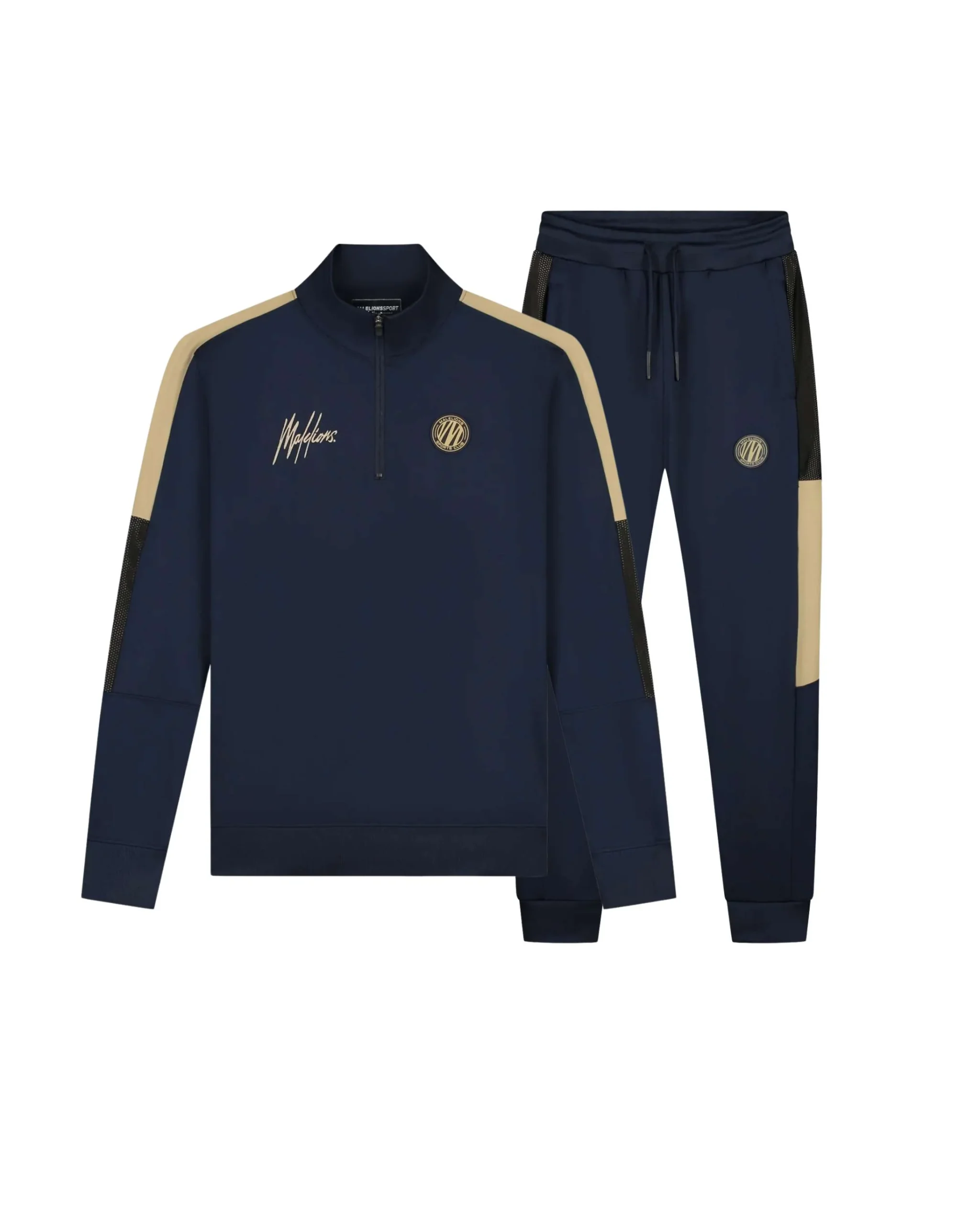 Malelions Sport Transfer Quarter Zip Tracksuit | Navy/Gold
