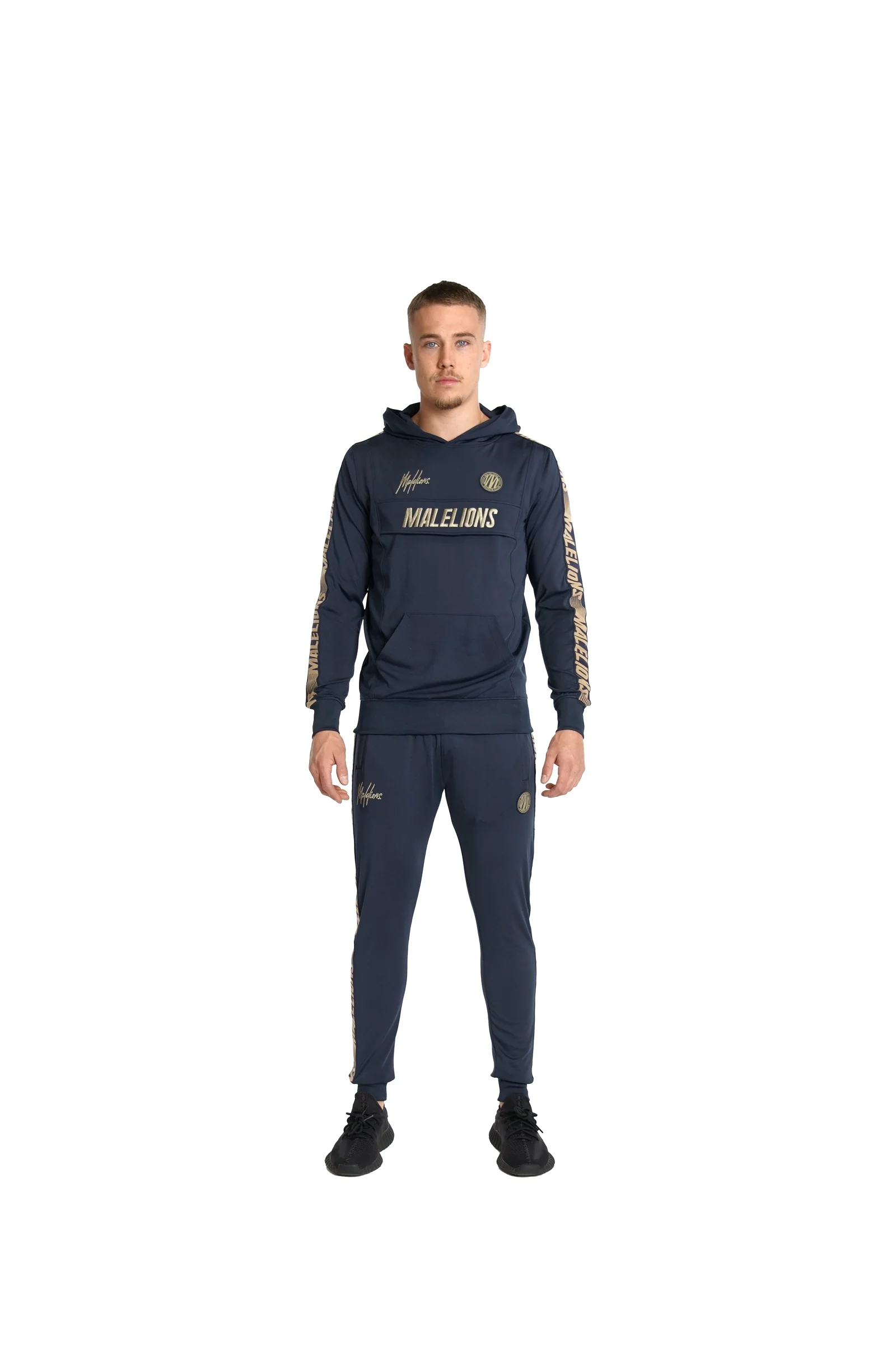 De Malelions Sport Warming Up Tracksuit in de kleuren marineblauw/goudis een stijlvolle en comfortabele trainingsset, perfect voor zowel sportieve activiteiten als casual wear. Gemaakt van hoogwaardig materiaal biedt dit tracksuit optimale bewegingsvrijheid en draagcomfort.
