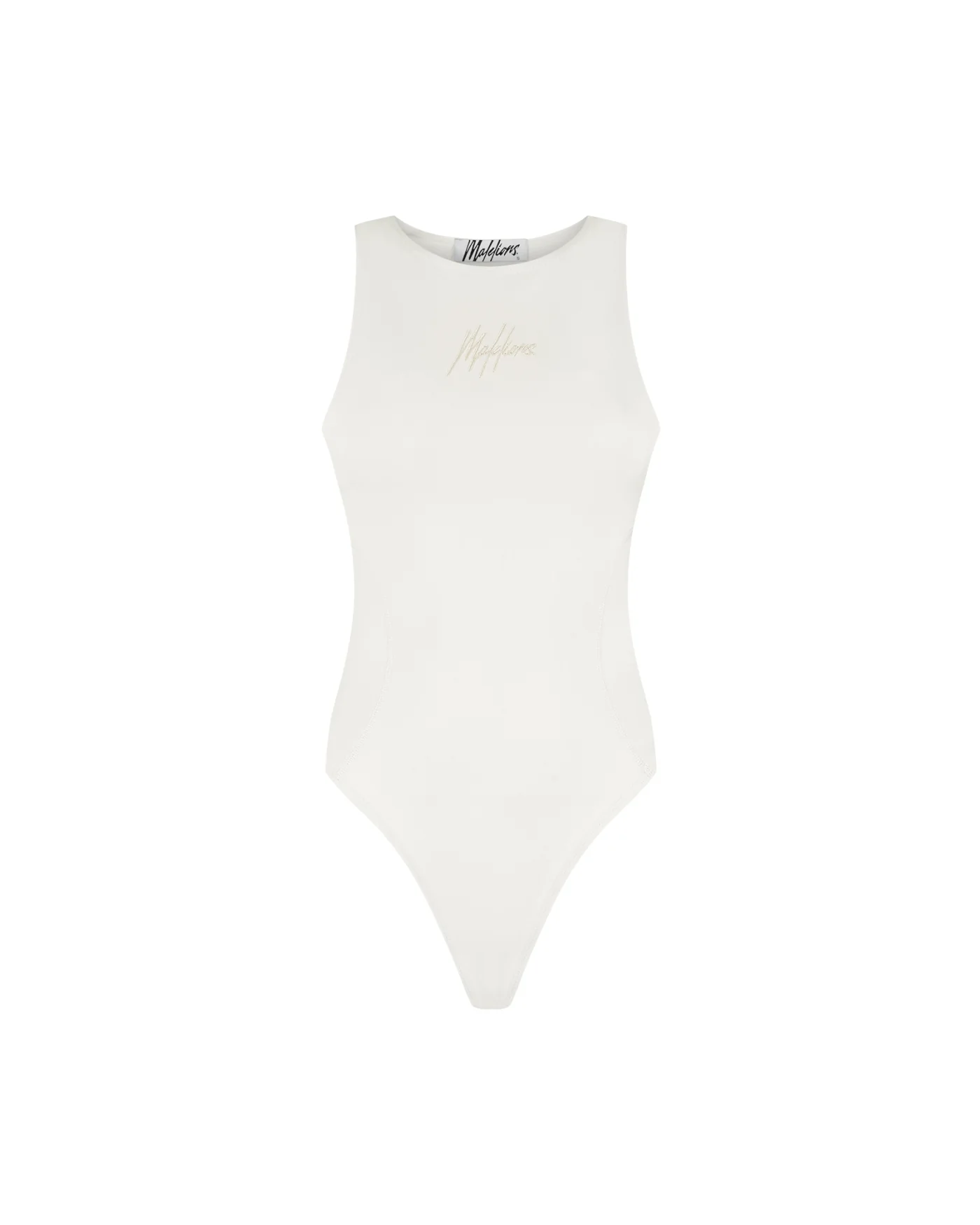 De Malelions Women Deconstructed Sleeveless Bodysuit in gebroken wit combineert een strakke pasvorm met een moderne uitstraling. Gemaakt van hoogwaardig stretchmateriaal voor optimaal comfort en bewegingsvrijheid. De subtiele Off-White tint geeft een tijdloze en veelzijdige look, perfect te combineren met elke outfit.