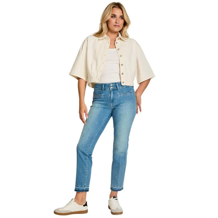 • Verfijnde denim look met vrouwelijke uitstraling