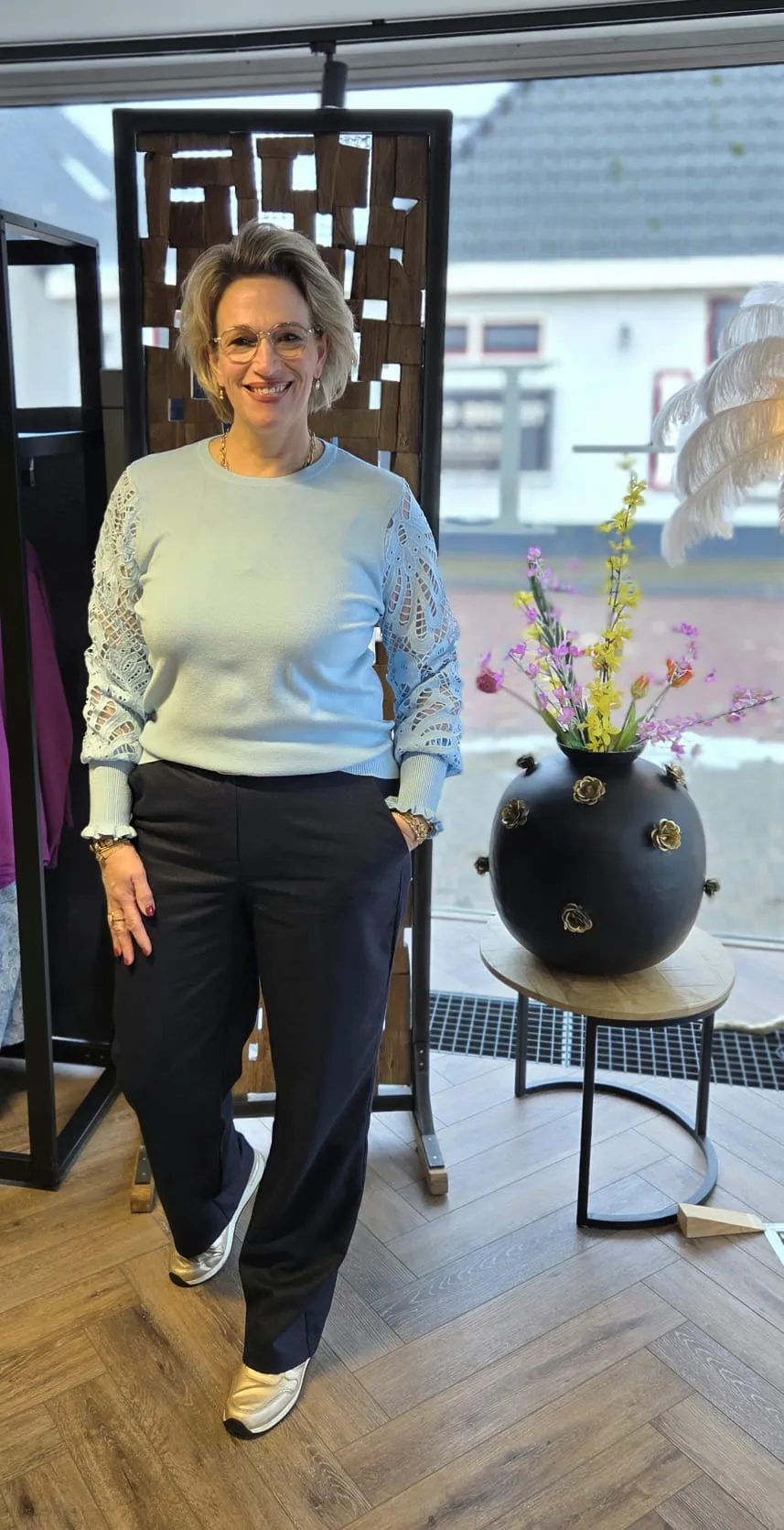 Mirjam is 1.76 lang en draagt altijd maat: L/XL.