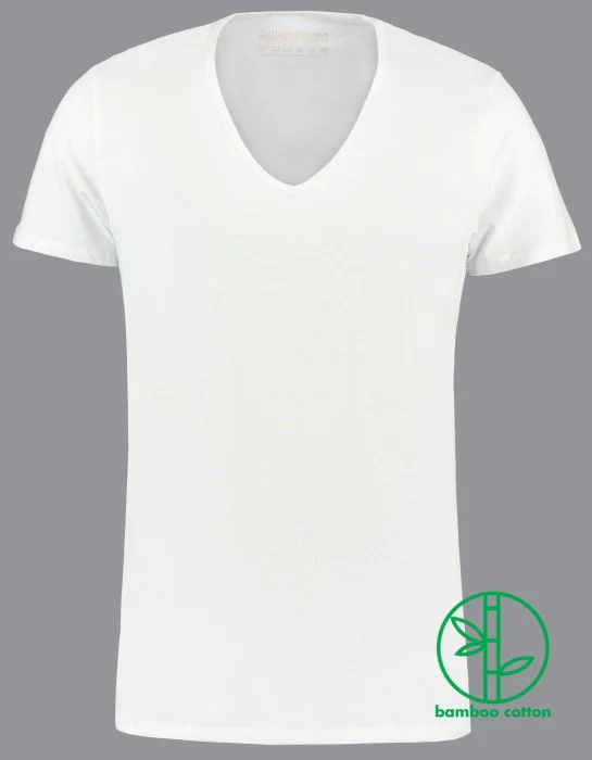 Dit witte extra diepe V-hals T-shirt (double pack) is gemaakt van 68% bamboe 28% premium 200 grams katoen (jersey) en 4% elastaan, waardoor het nog zachter aanvoelt en lichtelijk meerekt. De stof is zeer goed vochtafdragend door de unieke materiaal combinatie. De bamboe T-shirts (bamboekatoen) zijn lekker koel en ademend. De witte bamboe T-shirts met extra diepe V-hals hebben een moderne, licht getailleerde pasvorm. Het sluit mooi aan op het lichaam en heeft extra okselruimte, met als resultaat een heerlijke, comfortabele pasvorm met voldoende bewegingsvrijheid. De extra diepe V-hals bamboe T-shirts zijn ietsje langer aan de onderzijde zodat ze altijd in de broek blijven zitten (extra lang). De stof is voorgewassen en voorgekrompen waardoor het heerlijk zacht aanvoelt. Door deze speciale methoden blijft het T-shirt vormvast en krimpt het niet tot nauwelijks. Zo blijft het witte extra diepe V-hals T-shirt lang goed.