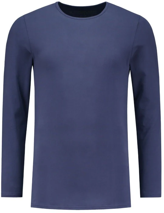 2-pack heerlijke navy blauwe (donkerblauw) longsleeve T-shirts met lange mouwen (Longsleeves T-shirt) en ronde hals (crew neck). Navy blauw is een populaire kleur onder T-shirts. Donkerblauw straalt rust en kalmte uit, maar ook luxe. De lange mouwen van dit model komen tot aan de pols in plaats van de elleboog, zoals bij ‘normale’ T-shirts. Lange mouwen worden gedragen voor extra warmte of om de armen extra bescherming te bieden. Een ronde hals heeft een schone en degelijke uitstraling waarbij de nek wordt geaccentueerd.