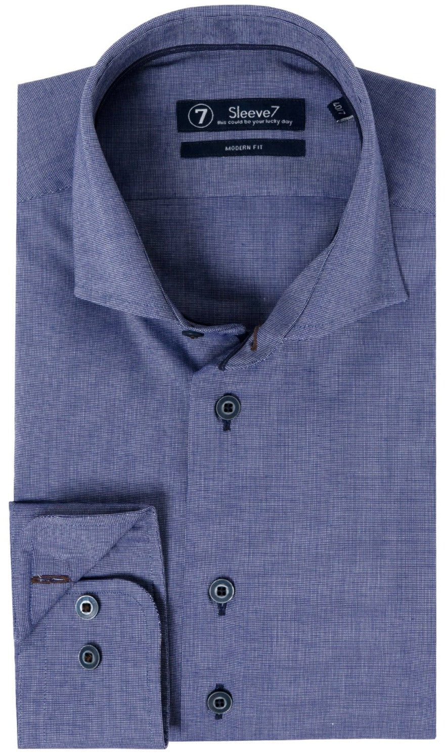 De Italian spread boord is een moderne variant van de widespread boord, waarbij de punten verder uit elkaar staan dan bij de klassieke rechte boord. Het kan gedragen worden met stropdas of vlinderdas, maar kan ook zonder gedragen worden. Met de modern fit pasvorm, de extra (mouw)lengte en de bijzondere plaatsing van de knopen, is dit blauwe overhemd met fil-a-fil weving van Sleeve7 een overhemd met een bijzonder draagcomfort. Het overhemd is eenvoudig te strijken dankzij de easy iron eigenschappen.