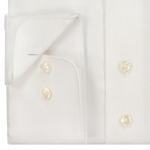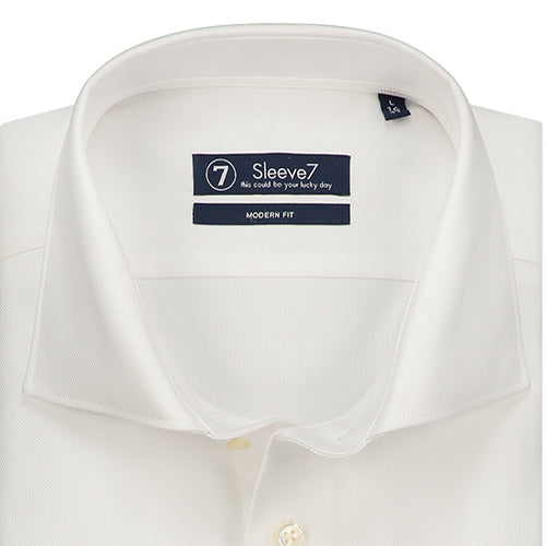 Wit overhemd met extra lange mouw en extra ruglengte van Sleeve7 overhemden. Extra luxe uitvoering van het witte overhemd. Te matchen met vrijwel elk ander kledingstuk. Een oxford stof is ruw en grof geweven. Hierdoor blijft het overhemd nog langer mooi, sterker nog, hoe langer het overhemd gedragen wordt hoe beter het eruit zal gaan zien. De Italian spread boord is een moderne variant van de spread boord, waarbij de punten iets verder uit elkaar staan dan de klassieke rechte boord. Het overhemd is licht getailleerd en heeft dus een modern fit pasvorm. En is het gemakkelijk te strijken (easy iron).