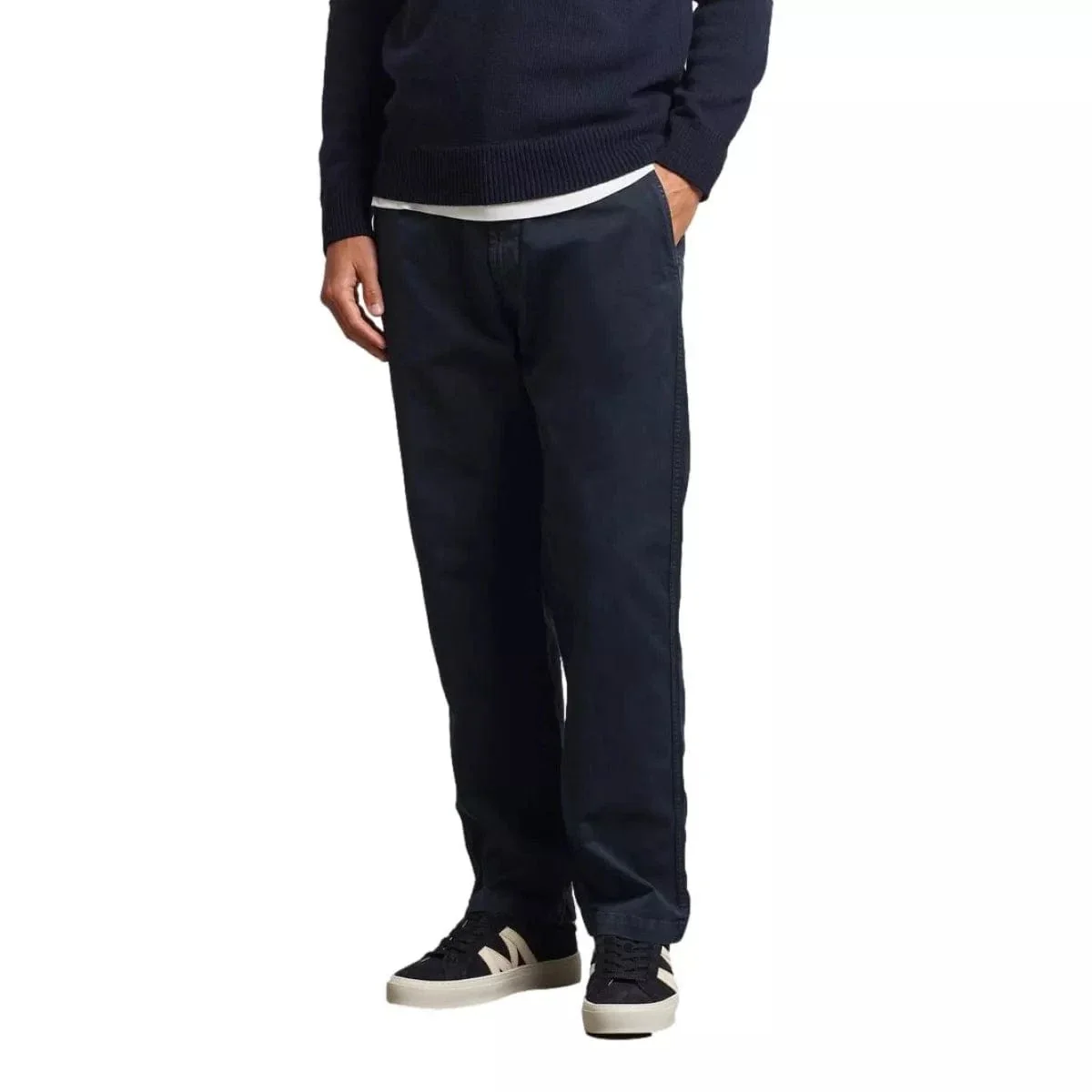 De donkerblauwe kleur maakt deze chino veelzijdig en eenvoudig te combineren met T-shirts, overhemden of truien. Of je nu gaat voor een casual outfit of een meer geklede look, deze chinobroek is de perfecte basis. Dankzij de slimme pasvorm en duurzame afwerking geniet je van zowel stijl als functionaliteit.