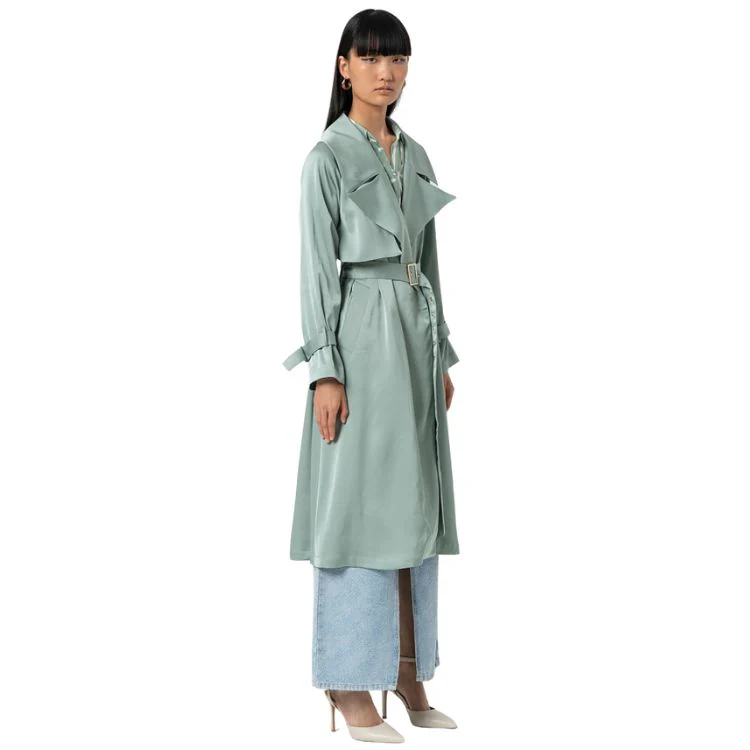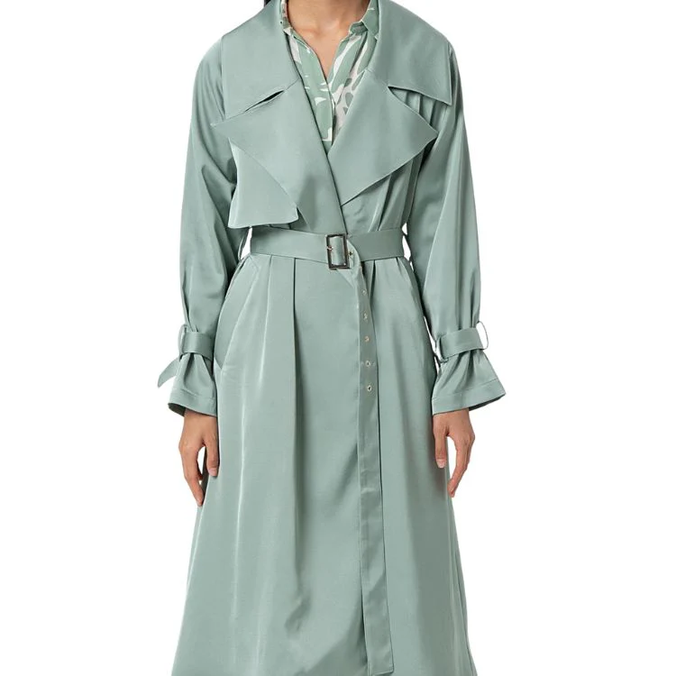 Trenchcoat in mintkleur. Tijdloos en elegant model.