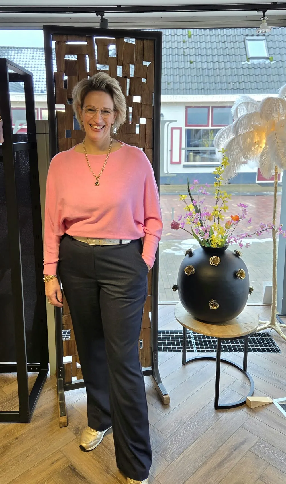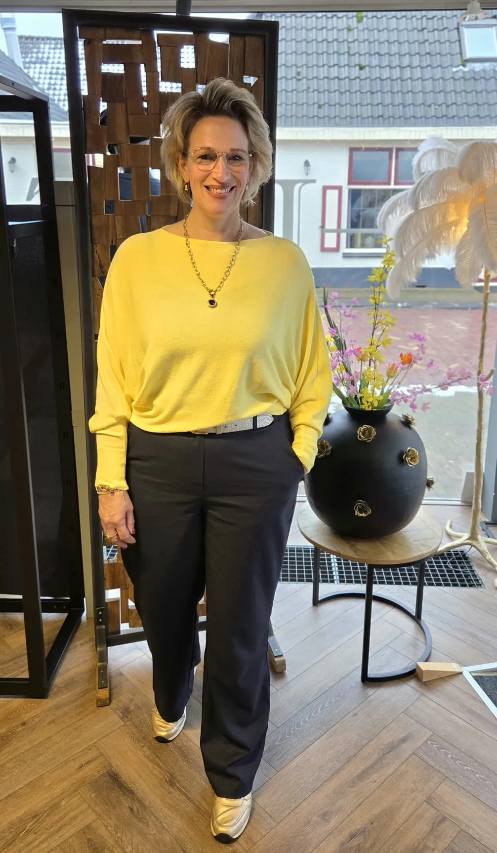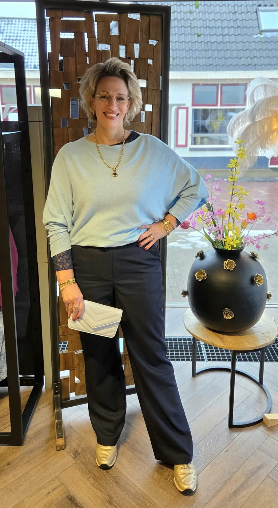 Mirjam is 1.76 lang en draagt altijd maat: L/XL.